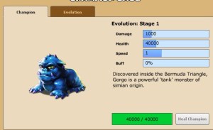 Just a little bit of a teaser. This is one of the three Champions that can attack any monster that goes near your base. This one is in its infancy though. The three are divided into a tank (strong defense), striker (strong attack) and buffer (increase stats). You can choose whatever you like. That little blue guy above is the tank.