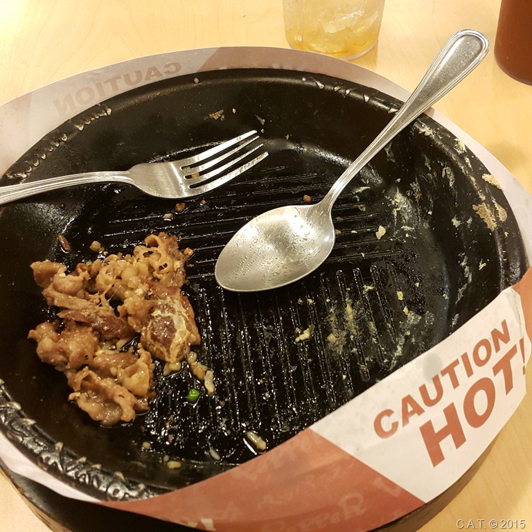 Oopsie! I was going to take a picture of my food before I ate it but I was really hungry and my mouth was watering already. I love to leave some meat behind and pour honey brown and garlic sauce over it and munch them as they cool.
