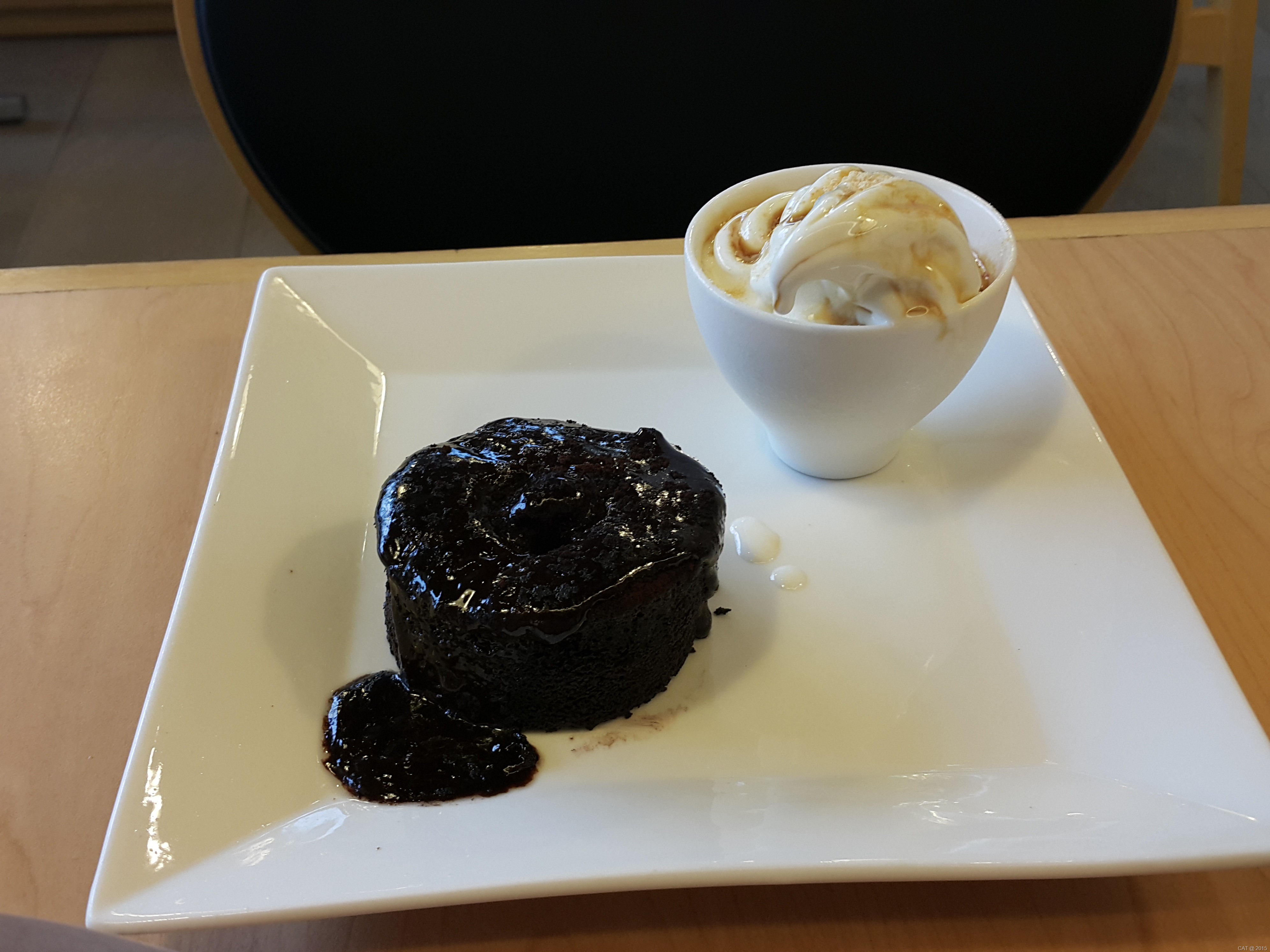 Finally came dessert. I wasn’t able to order one the last time. This is the usual dessert I order when I’m here. It’s their Molten Lava Cake ala Mode. Well, “ala mode” is just cake with a scoop of ice cream.