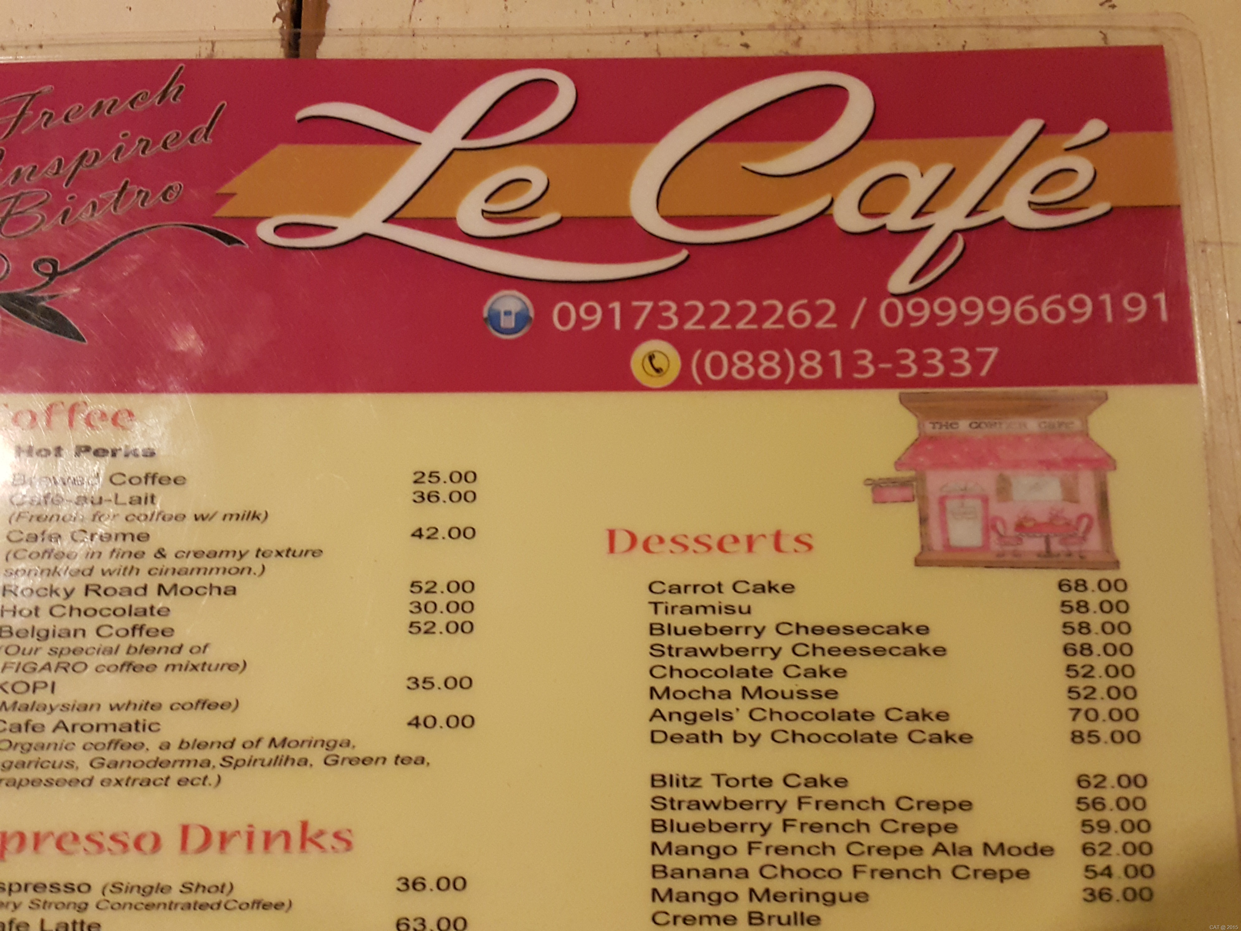 Le Café also takes orders for take-out or catering. Here is their contact number in case if you want to call them. The place is also famous for their cakes and pasta so be sure to check them out.