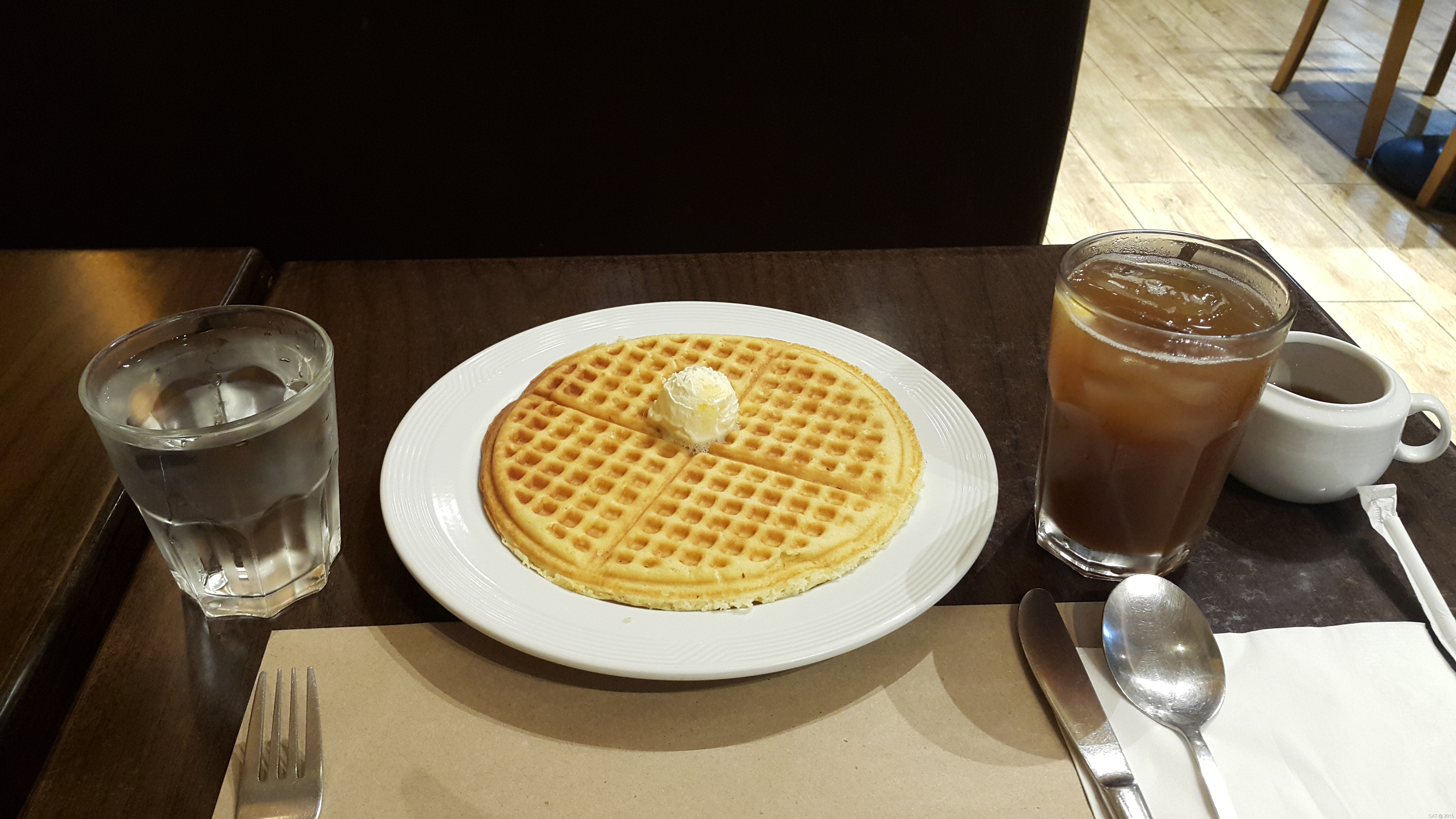 First, I ordered a classic waffle which they described as “golden brown”. The flavor was mediocre, I guess it’s because pancakes are now common and there are streetfood versions available. The taste is like Waffletime. Belgian waffles had a more distinct taste. However, I was given a generous serving of maple syrup and butter so I can’t complain much. Still I was expecting a heavenly meal. It was okay while it was hot but the waffle cooled quickly and the rest of the waffle tasted like flour.