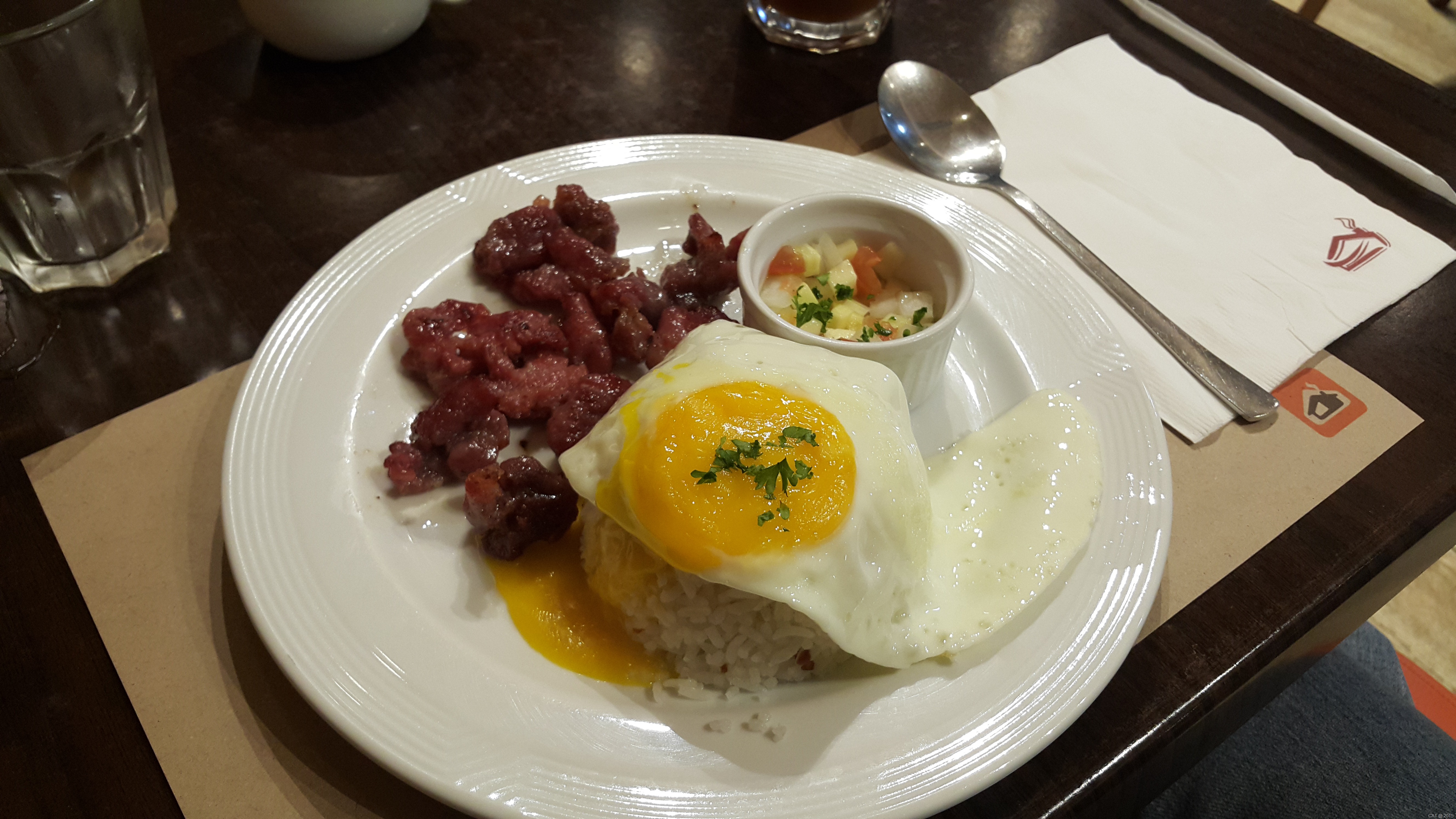 Pancake House also serves meals like this Tapsilog otherwise known as Tapa (beef jerky), Sinanlag (fried rice), Itlog (sunny side up fried egg). The meal was plain. The tapa was too spicy, the egg looked and tasted like it got zapped in a microwave and the rice wasn’t “fried rice”. Overall, I’m disappointed with the experience. Especially since the whole meal was almost half a thousand pesos.