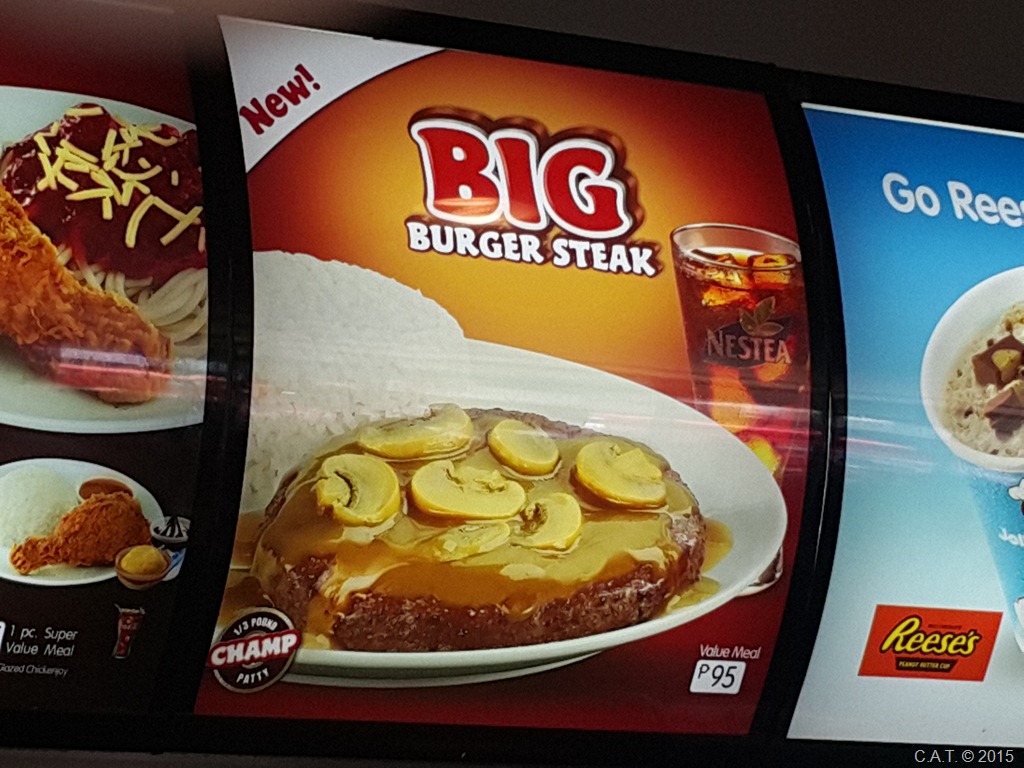 I really should watch my diet. However sometimes I feel like splurging a bit. This time I tried Jollibee’s Big Burger steak meal.