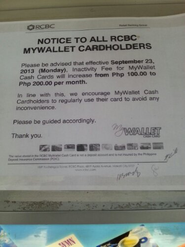 So I did not know about this. Apparently if you do not use your RCBC MyWallet Card, this means they’ll deduct 200 pesos. Hmm then again, I’m always using my account.